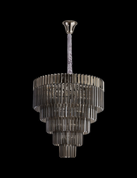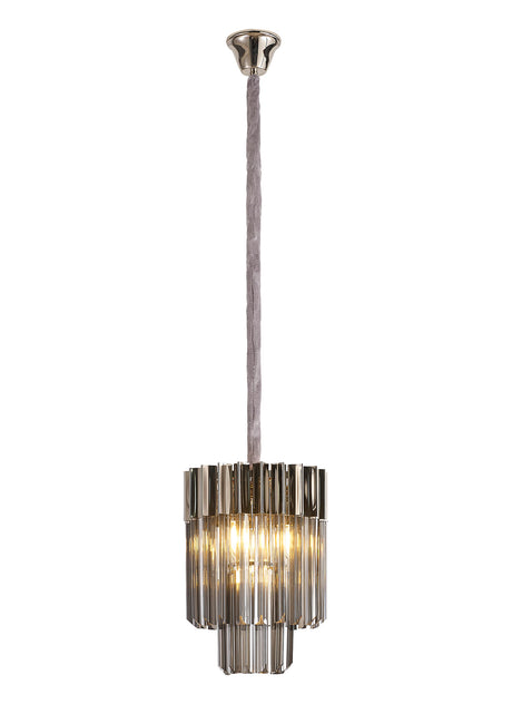 Longhorn 30cm Pendant Round 4 Light E14, Polished Nickel / Smoke Sculpted Glass