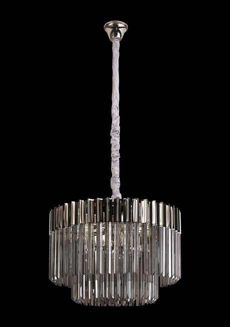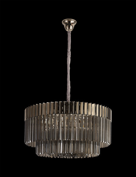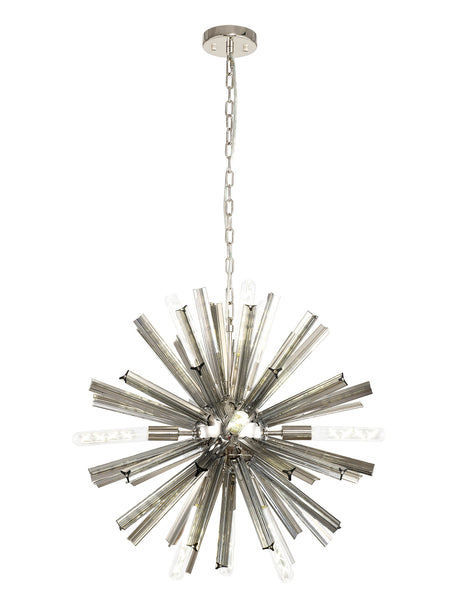 £331.67 + VAT (£398.00)Unit price /UnavailableIn stock (47 units)Harris 10 Light E14, Round Pendant Polished Nickel / Smoke Glass