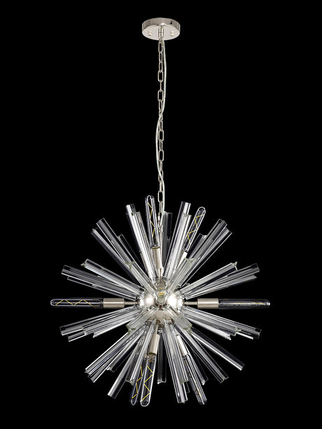 £331.67 + VAT (£398.00)Unit price /UnavailableIn stock (87 units)Harris 10 Light E14, Round Pendant Polished Nickel / Clear Glass