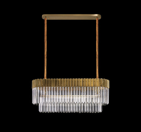 £825.00 + VAT (£990.00)Unit price /UnavailableVery low stock (3 units)Byrne Oblong Linear Pendant 14 Light G9 French Gold/Crystal