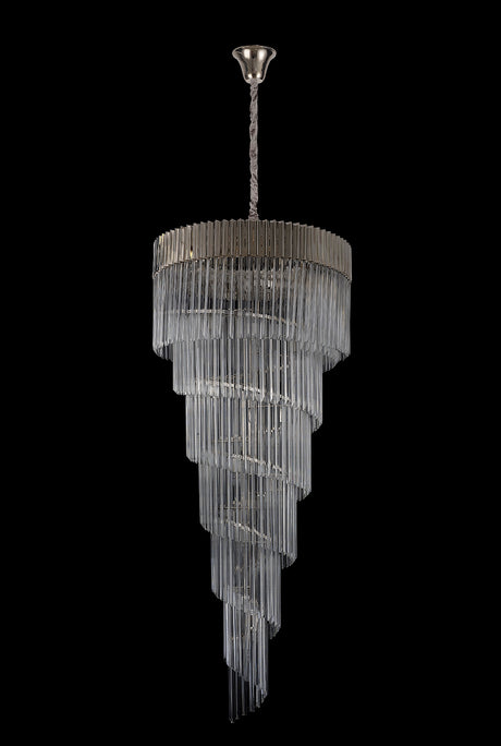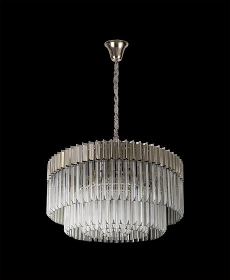£458.33 + VAT (£550.00)Unit price /UnavailableIn stock (25 units)Longhorn 80cm Pendant Round 12 Light E14, Polished Nickel/Clear Sculpted Glass, Item Weight: 25.4kg