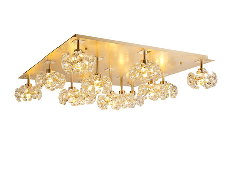 Byrne Square 13 Light G9 Flush Light With French Gold Square And Crystal Shade, Item Weight: 17.2kg