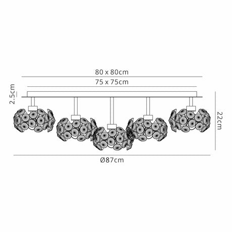 Bramble Fixed Pendant/Semi Ceiling, 6 x E14, Pewter/Clear/Grain Glass