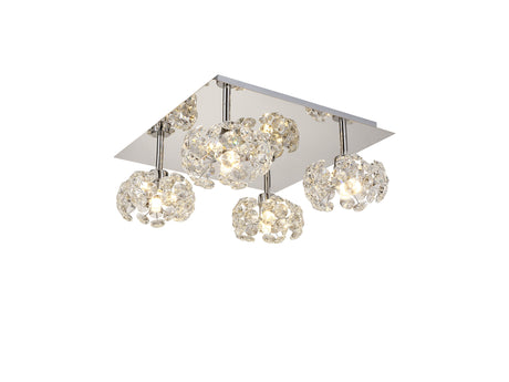 Byrne Square 4 Light G9 40cm Flush Light With Polished Chrome Square And Crystal Shade