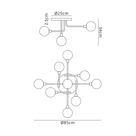 £189.60 + VAT (£227.52)Unit price /UnavailableLow stock (10 units)Ferguson Semi Flush Ceiling Light, 6 x G9, Satin Black, Chrome Plated Glass