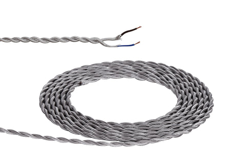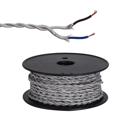 Robson 25m Roll Silver Braided Twisted 2 Core 0.75mm Cable VDE Approved