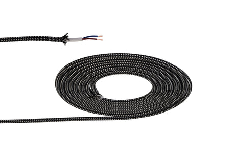 Robson 25m Roll Black & White Wave Stripes Braided 2 Core 0.75mm Cable VDE Approved