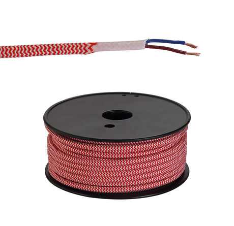 Robson 25m Roll Red & White Wave Stripes Braided 2 Core 0.75mm Cable VDE Approved
