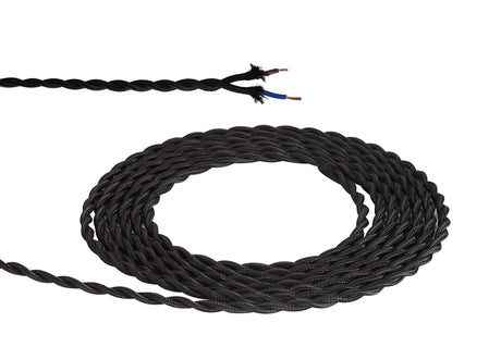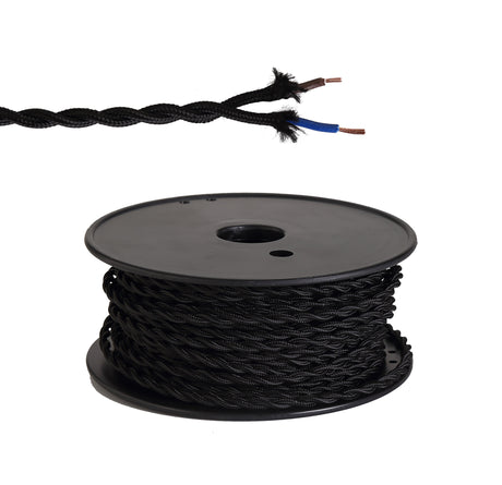 Robson 25m Roll Black Braided Twisted 2 Core 0.75mm Cable VDE Approved