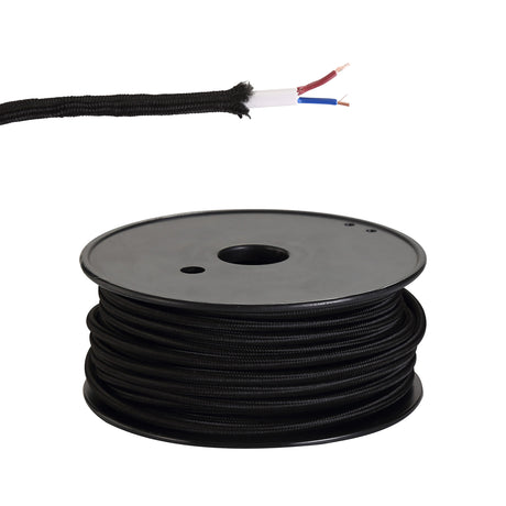 Robson 25m Roll Black Braided 2 Core 0.75mm Cable VDE Approved
