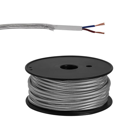 Robson 25m Roll Silver Braided 2 Core 0.75mm Cable VDE Approved
