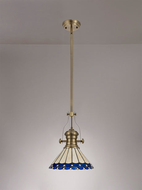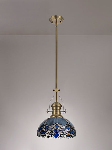 £150.83 + VAT (£181.00)Unit price /Unavailable Williams 1 Light Pendant E27 With 30cm Tiffany Shade, Antique Brass/Blue/Cream/Crystal