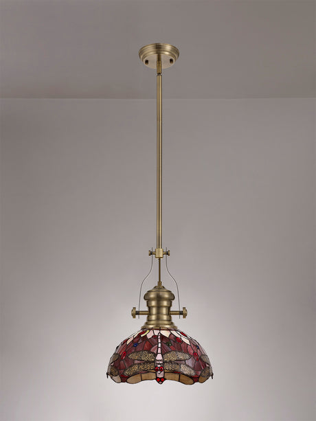 £165.83 + VAT (£199.00)Unit price /UnavailableVery low stock (8 units)Hinnigan 1 Light Pendant E27 With 30cm Tiffany Shade, Antique Brass/Purple/Pink/Crystal
