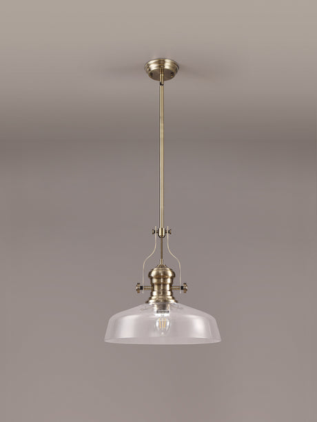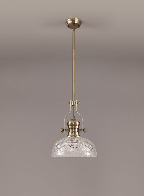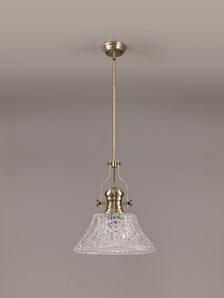 Munro Pendant With 30cm Flat Round Patterned Shade, 1 x E27, Antique Brass/Clear Glass