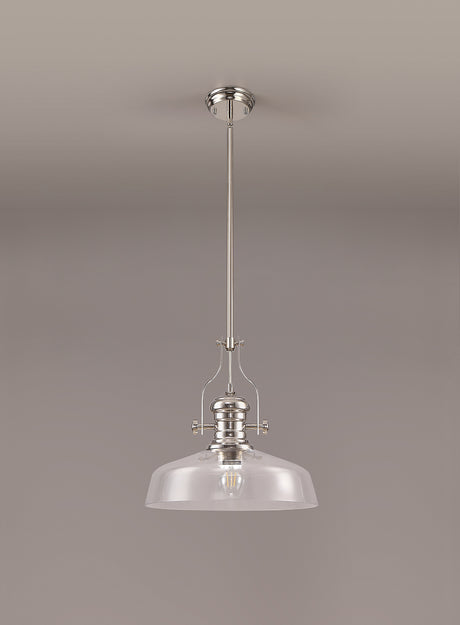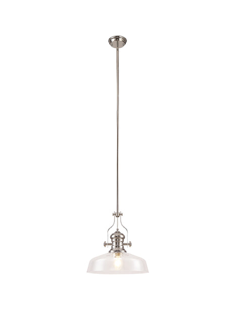 £140.00 + VAT (£168.00)Unit price /UnavailableIn stock (27 units)Munro Pendant With 38cm Flat Round Shade, 1 x E27, Polished Nickel/Clear Glass