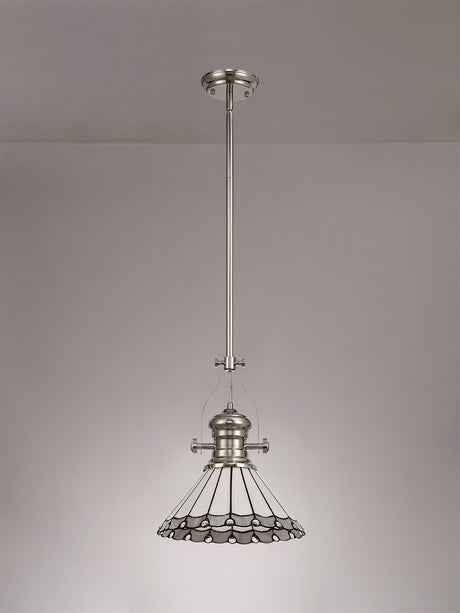 £153.33 + VAT (£184.00)Unit price /UnavailableIn stock (27 units)Williams 1 Light Pendant E27 With 30cm Tiffany Shade, Polished Nickel/Grey/Cream/Crystal