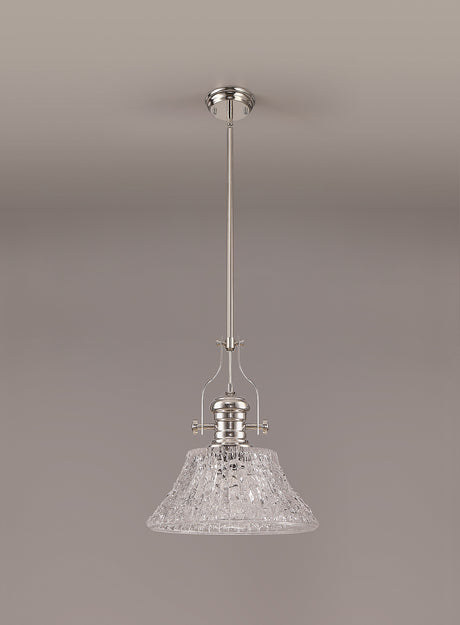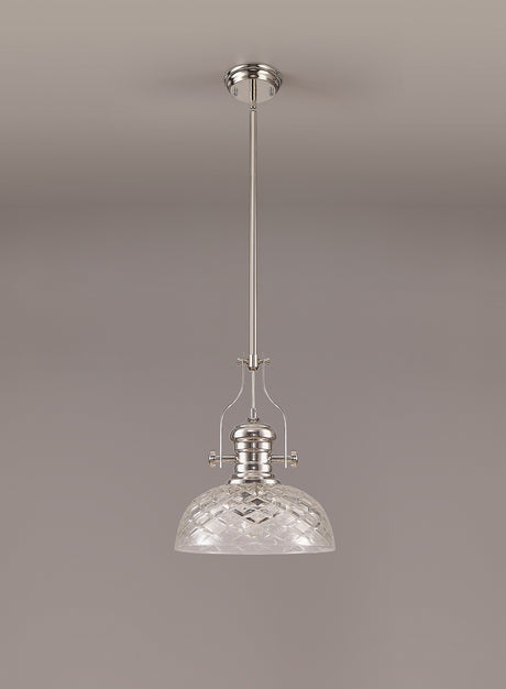 Munro Pendant With 30cm Flat Round Patterned Shade, 1 x E27, Polished Nickel/Clear Glass