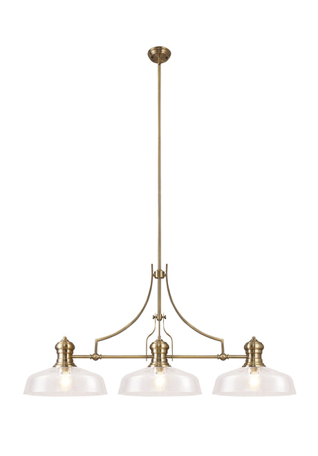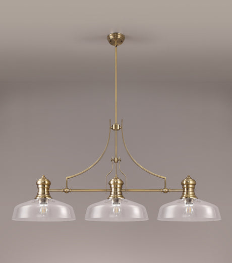 £145.00 + VAT (£174.00)Unit price /UnavailableLow stock (14 units)Munro Linear Pendant With 38cm Flat Round Shade, 3 x E27, Antique Brass/Clear Glass