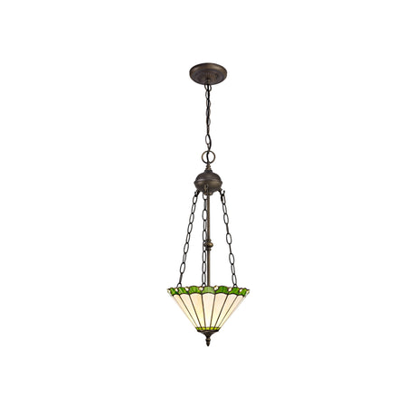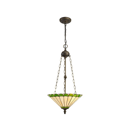 Williams 3 Light Semi Flush E27 With 30cm Tiffany Shade, Green/Cream/Crystal/Aged Antique Brass