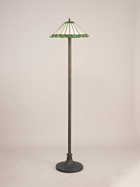Williams 2 Light Semi Flush E27 With 30cm Tiffany Shade, Green/Cream/Crystal/Aged Antique Brass