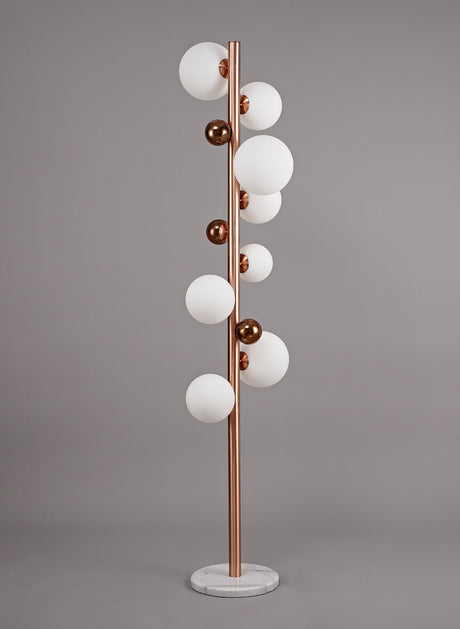 £115.00 + VAT (£138.00)Unit price /UnavailableVery low stock (7 units)Suggett Floor Lamp, 8 x G9, Antique Copper/Opal & Copper Glass With White Marble Base