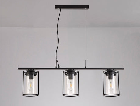 Swinburne Linear Pendant, 3 Light E27, Black/Clear Glass