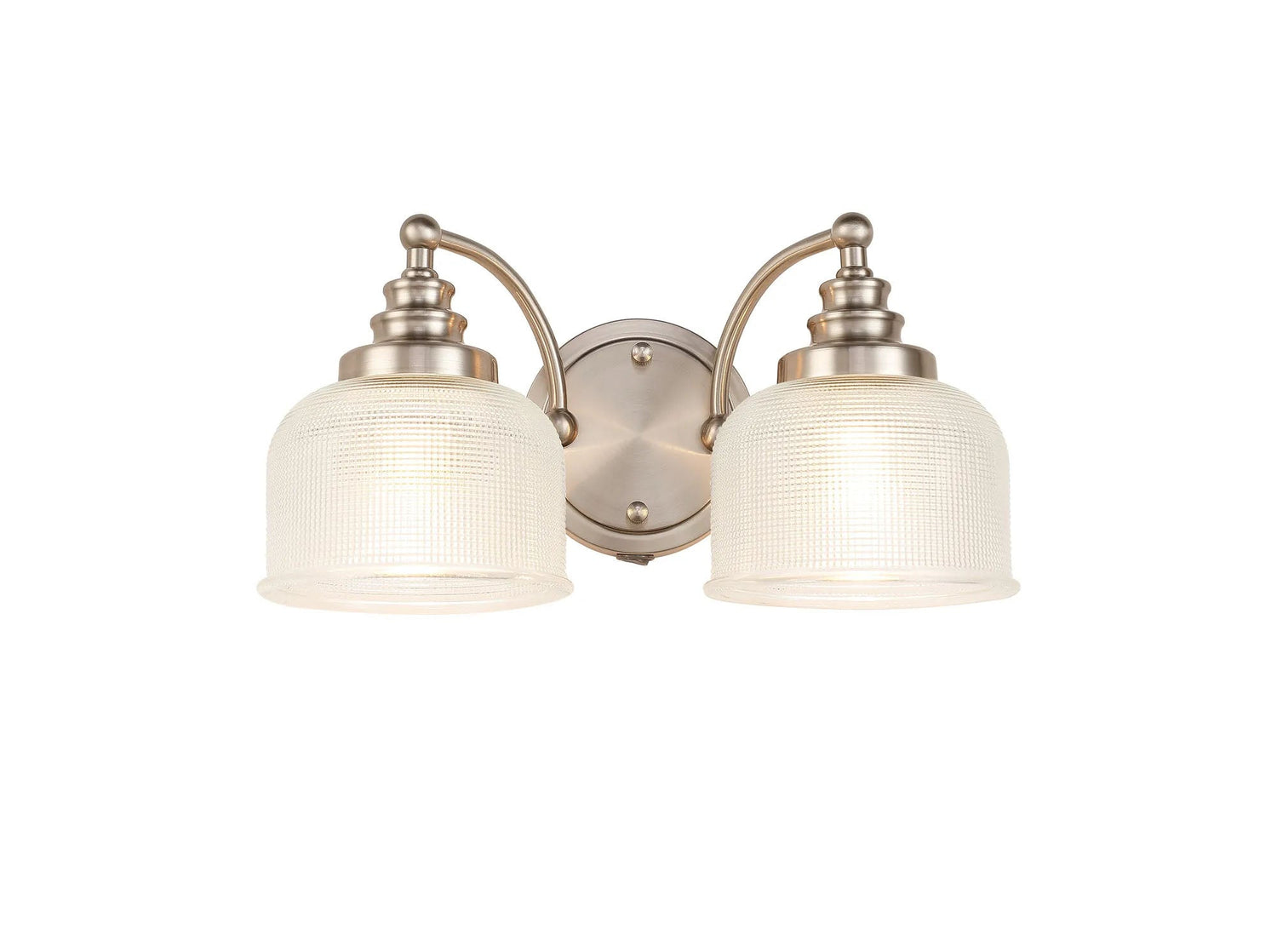 Gray Switched Double Wall Light, 2 Light E27 Satin Nickel/Clear Glass