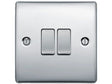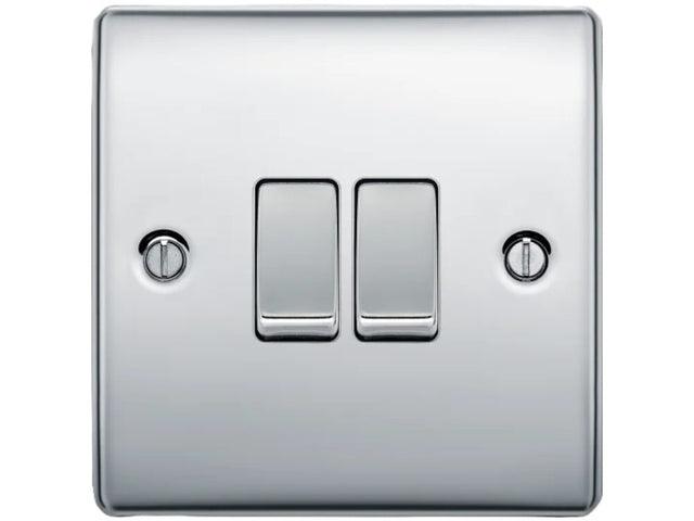 BG Nexus Metal 2 Gang 2 Way 20A 16AX Twin Switch in VARIOUS COLOURS - POLISHED CHROME BG NPC42 is backordered and will ship as soon as it is back in stock.