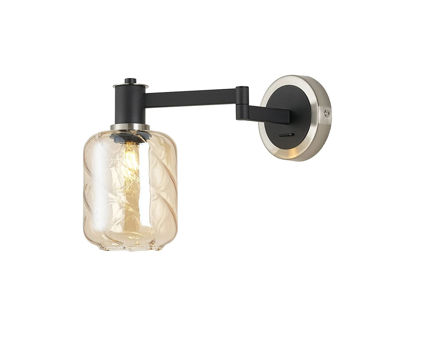 Adamson Adjustable Swing Arm Wall x 1 x E14 Satin Nickel/Satin Black/Amber Twisted Cylinder Glass