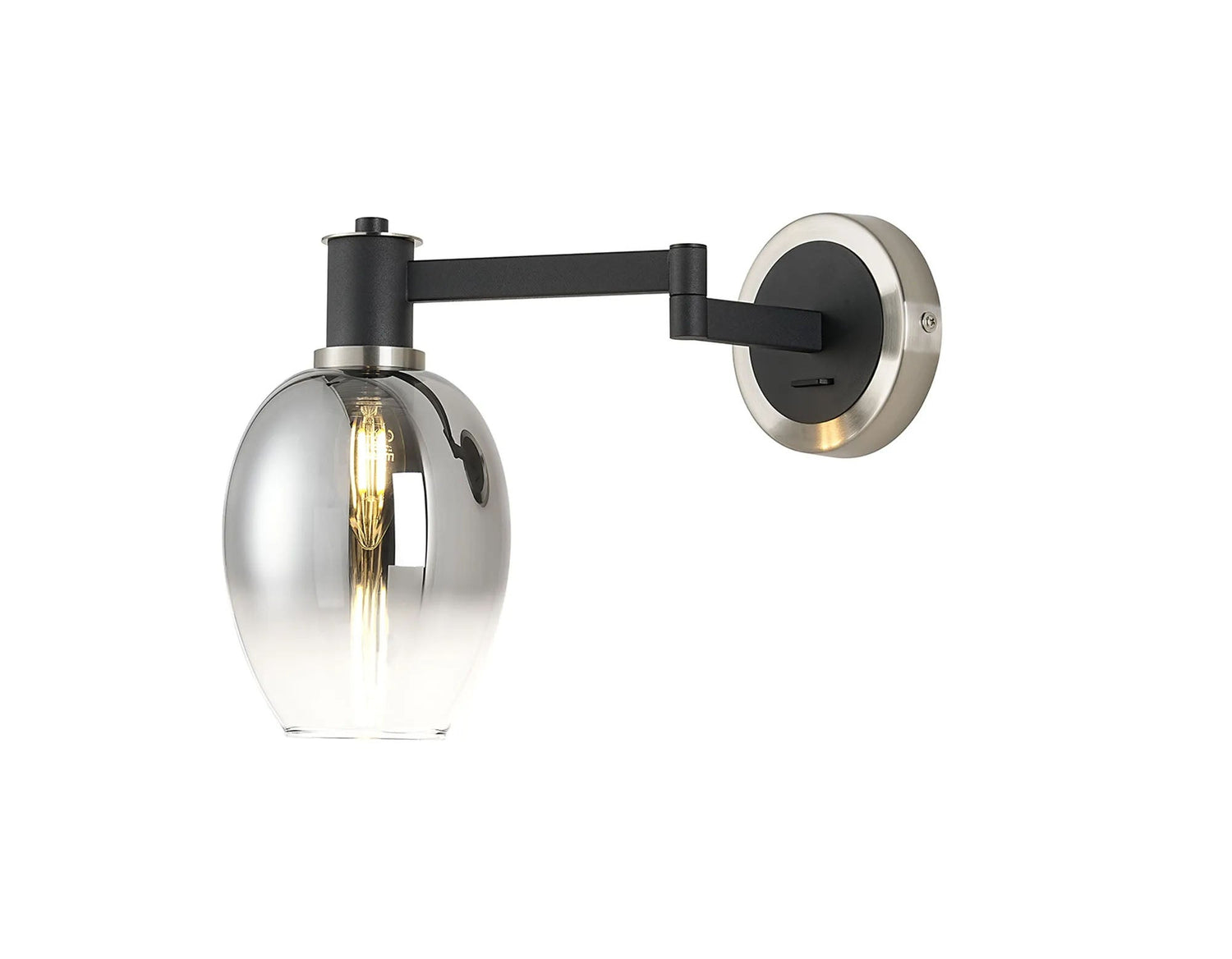 Adamson Adjustable Swing Arm Wall x 1 x E14 Satin Nickel/Satin Black/Smoke Fade Wine Glass Glass