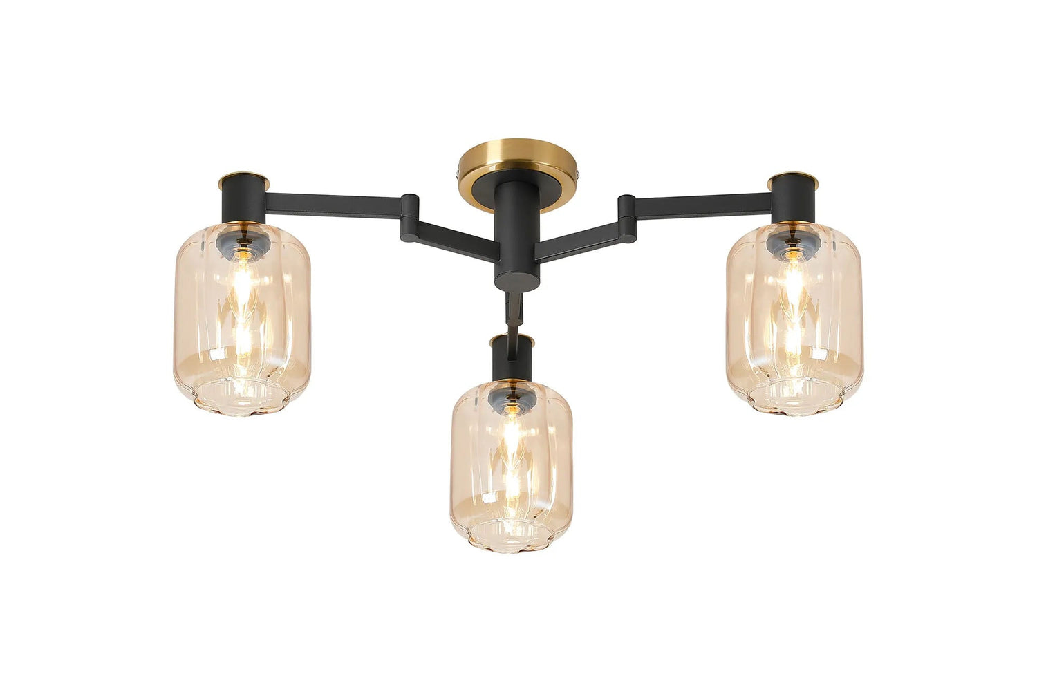 Adamson Swing Arm Flush Ceiling 3 x E14 Brass/Satin Black/Amber Striped Cylinder Glass