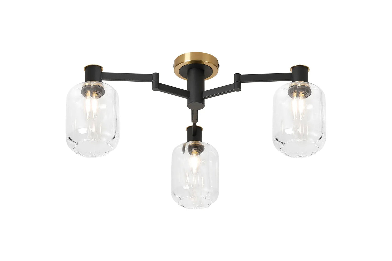 Adamson Swing Arm Flush Ceiling 3 x E14 Brass/Satin Black/Clear Striped Cylinder Glass is backordered and will ship as soon as it is back in stock.
