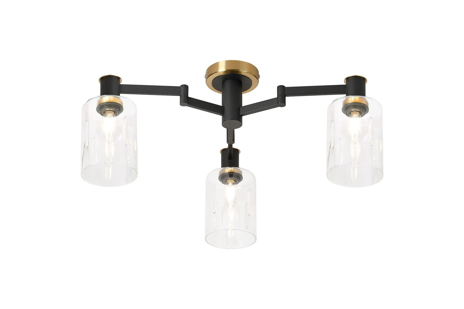Adamson Swing Arm Flush Ceiling 3 x E14 Brass/Satin Black/Clear Uniform Dimple Cylinder Glass
