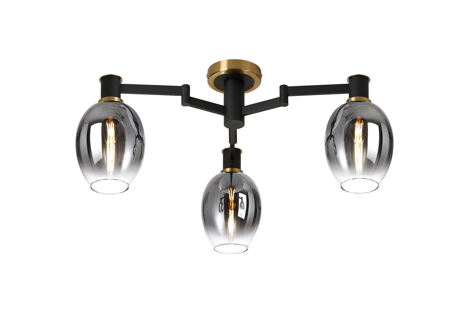 Adamson Swing Arm Flush Ceiling 3 x E14 Brass/Satin Black/Smoke Fade Wine Glass Glass