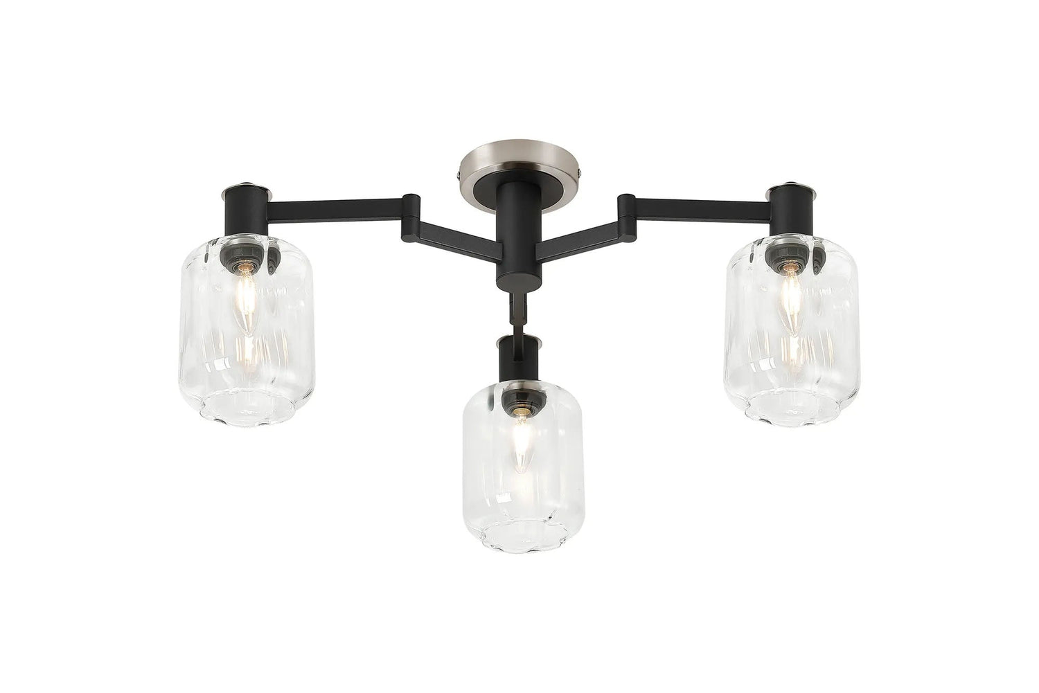 Adamson Swing Arm Flush Ceiling 3 x E14 Satin Nickel/Satin Black/Clear Striped Cylinder Glass