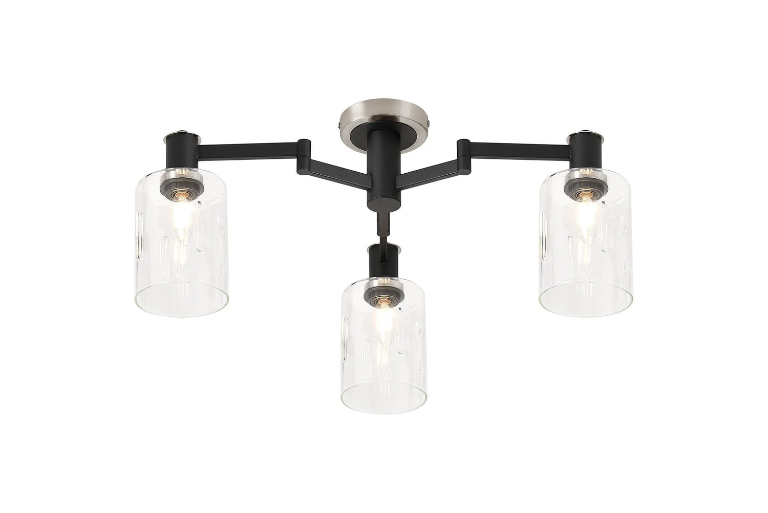 Adamson Swing Arm Flush Ceiling 3 x E14 Satin Nickel/Satin Black/Clear Uniform Dimple Cylinder Glass