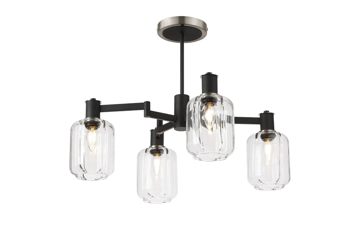 Adamson Swing Arm Semi Ceiling 4 x E14 Satin Nickel/Satin Black/Clear Striped Cylinder Glass is backordered and will ship as soon as it is back in stock.