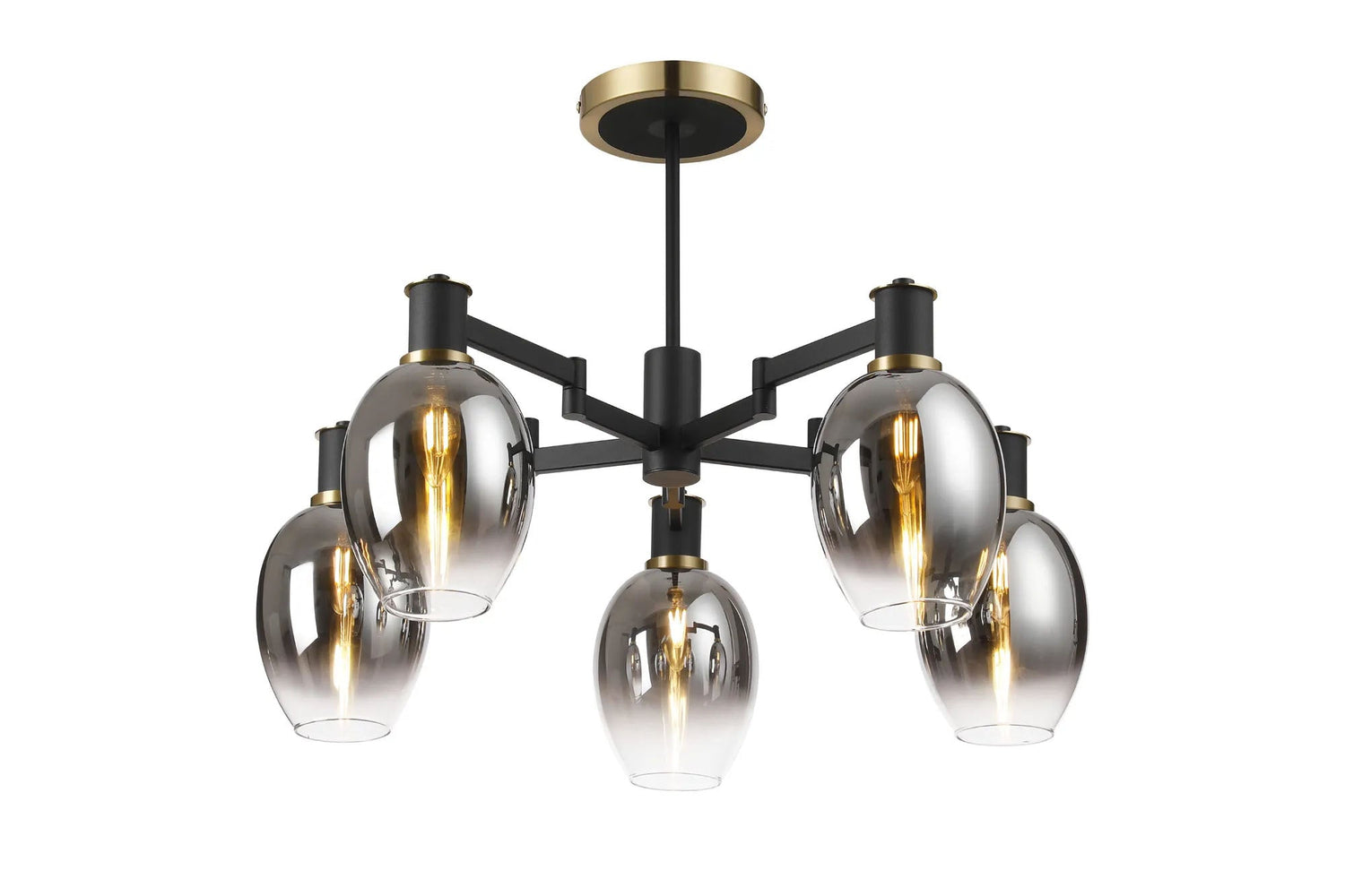 Adamson Swing Arm Semi Ceiling 5 x E14 Brass/Satin Black/Smoke Fade Wine Glass Glass