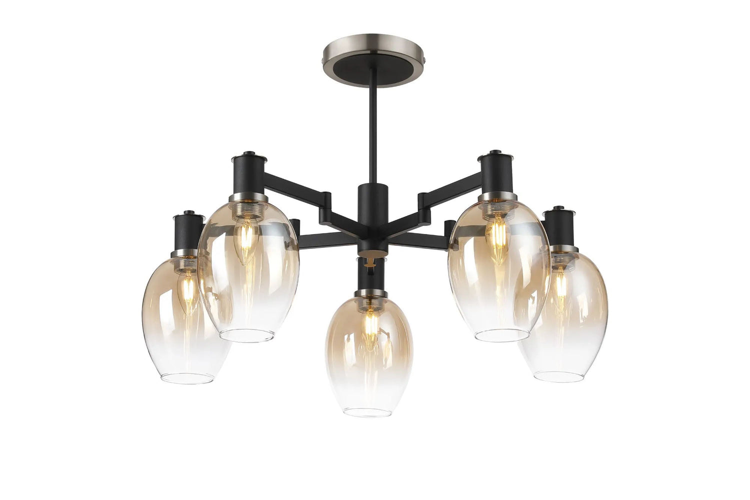 Adamson Swing Arm Semi Ceiling 5 x E14 Satin Nickel/Satin Black/Amber Fade Wine Glass Glass