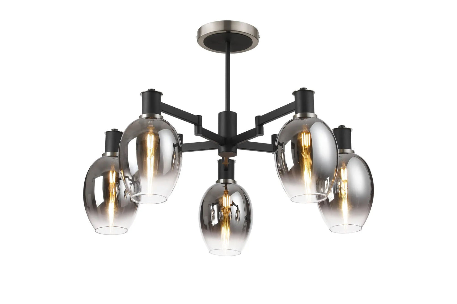 Adamson Swing Arm Semi Ceiling 5 x E14 Satin Nickel/Satin Black/Smoke Fade Wine Glass Glass