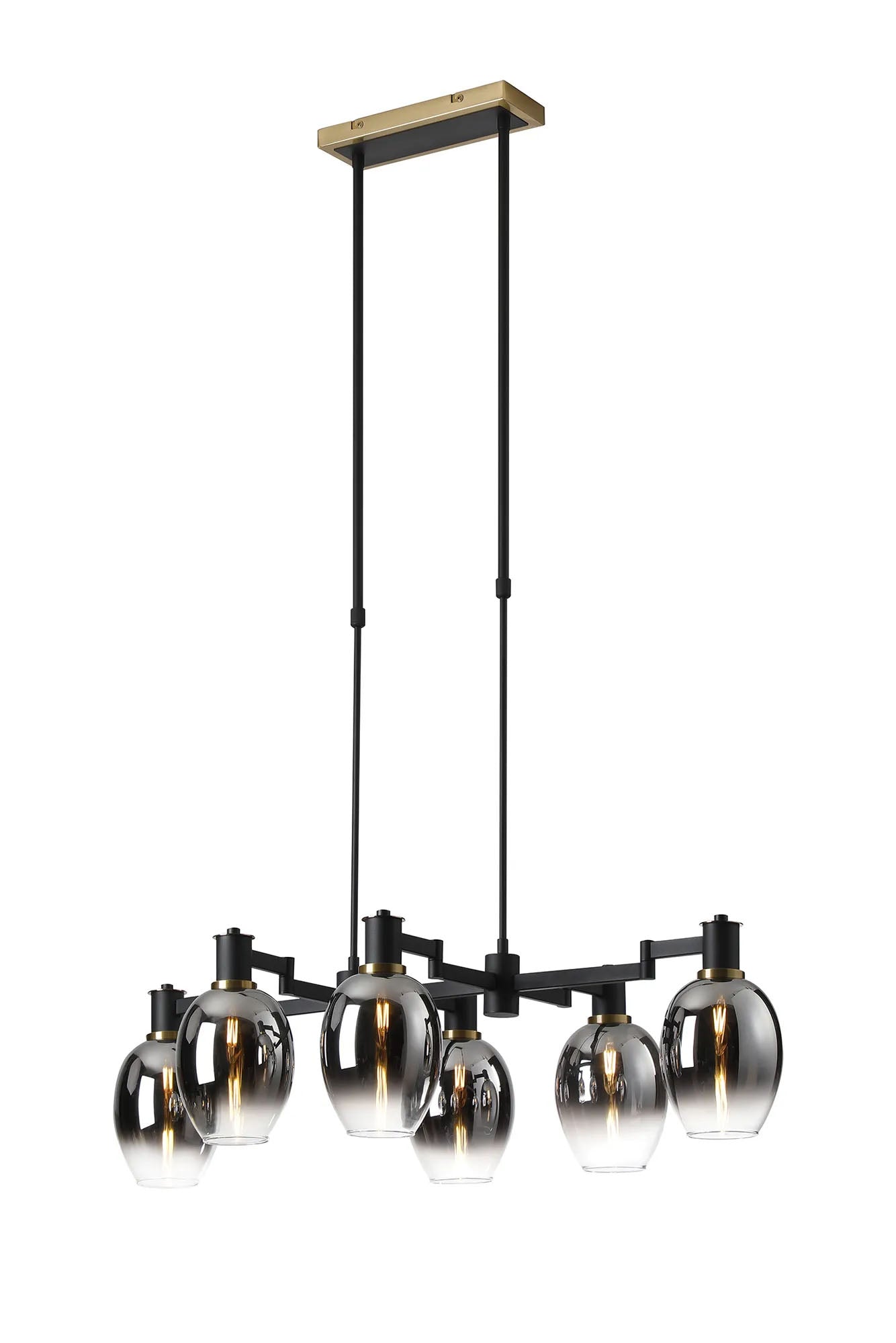 Adamson Swing Arm Telescopic Linear Pendant 6 x E14 Brass/Satin Black/Smoke Fade Wine Glass Glass