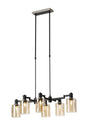 Adamson Swing Arm Telescopic Linear Pendant 6 x E14 Satin Nickel/Satin Black/Amber Uniform Dimple Cylinder Glass
