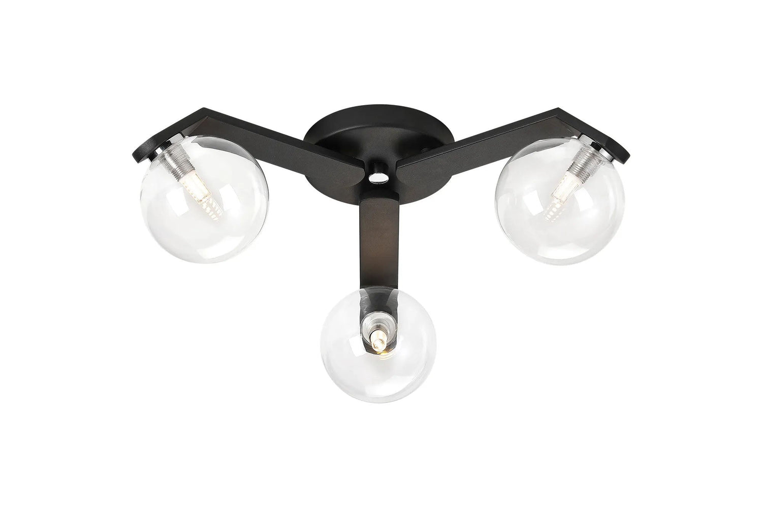 Bellingham Flush Ceiling, 3 x G9, IP44, Black/Polished Chrome/Clear Smooth Round Glass