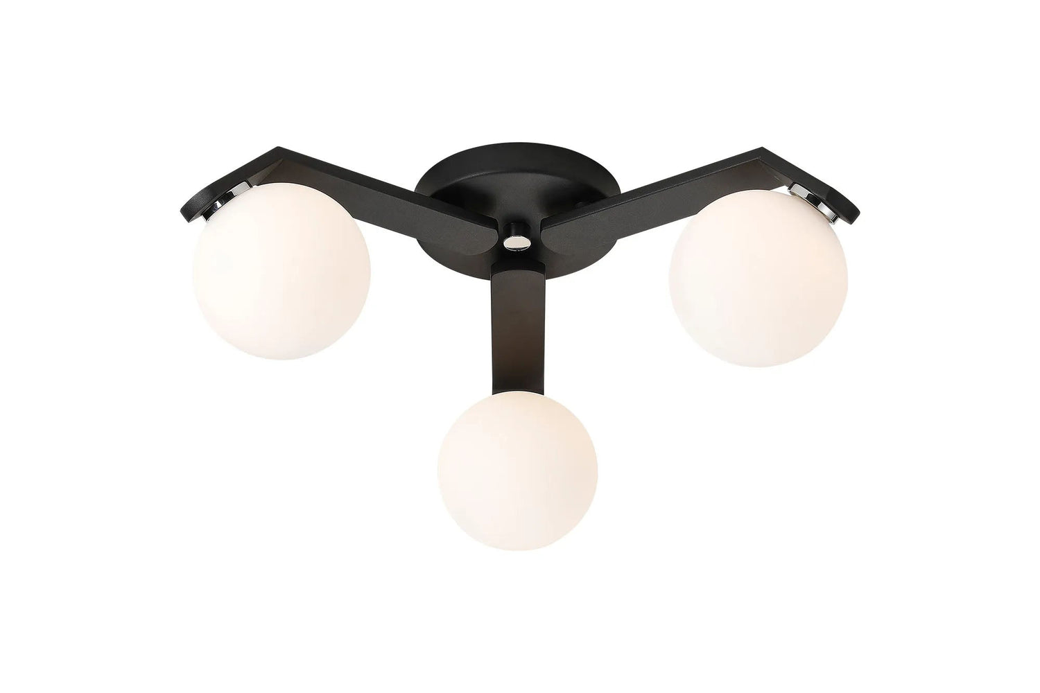 Bellingham Flush Ceiling, 3 x G9, IP44, Black/Polished Chrome/Opal Smooth Round Glass