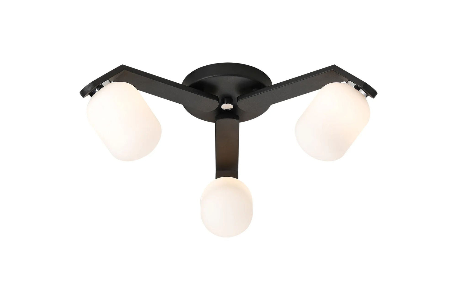 Bellingham Flush Ceiling, 3 x G9, IP44, Black/Polished Chrome/Opal Smooth Tubular Glass