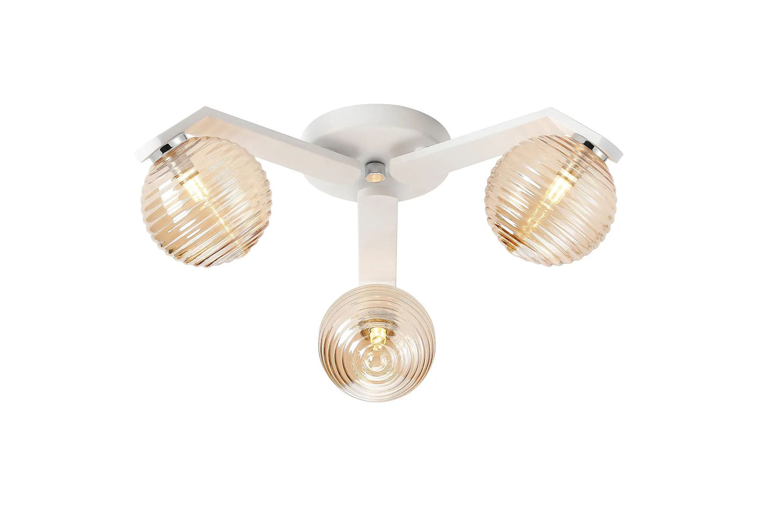 Bellingham Flush Ceiling, 3 x G9, IP44, White/Polished Chrome/Amber Ribbed Round Glass
