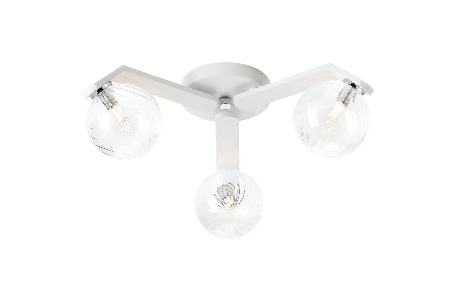 Bellingham Flush Ceiling, 3 x G9, IP44, White/Polished Chrome/Clear Swirl Round Glass
