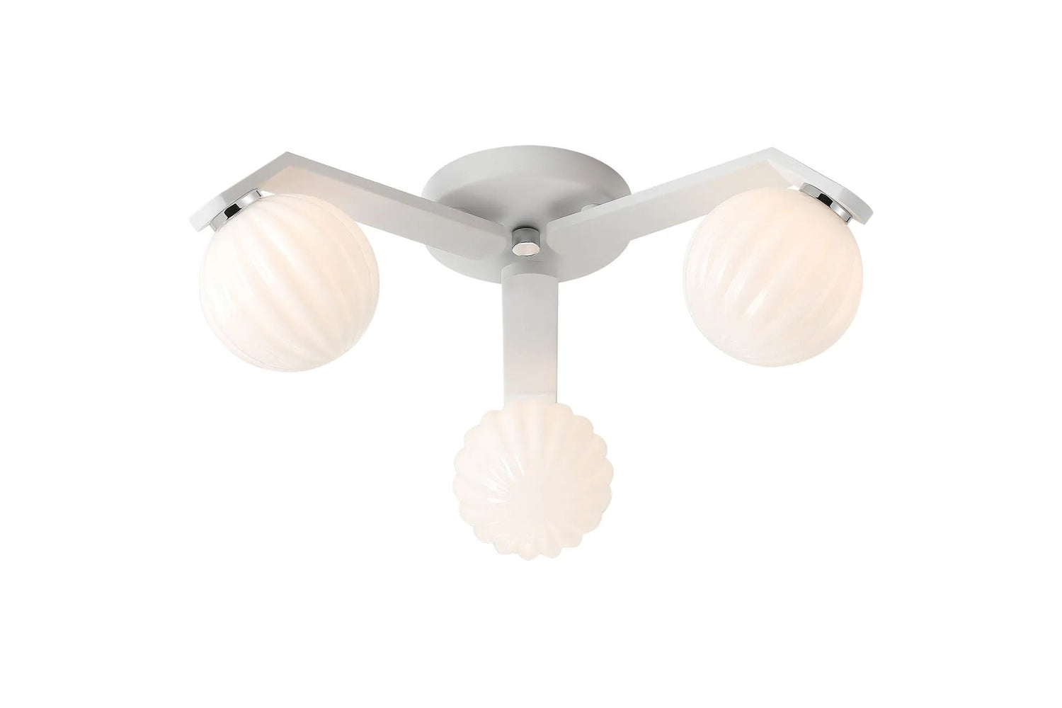 Bellingham Flush Ceiling, 3 x G9, IP44, White/Polished Chrome/Opal Round Segment Glass