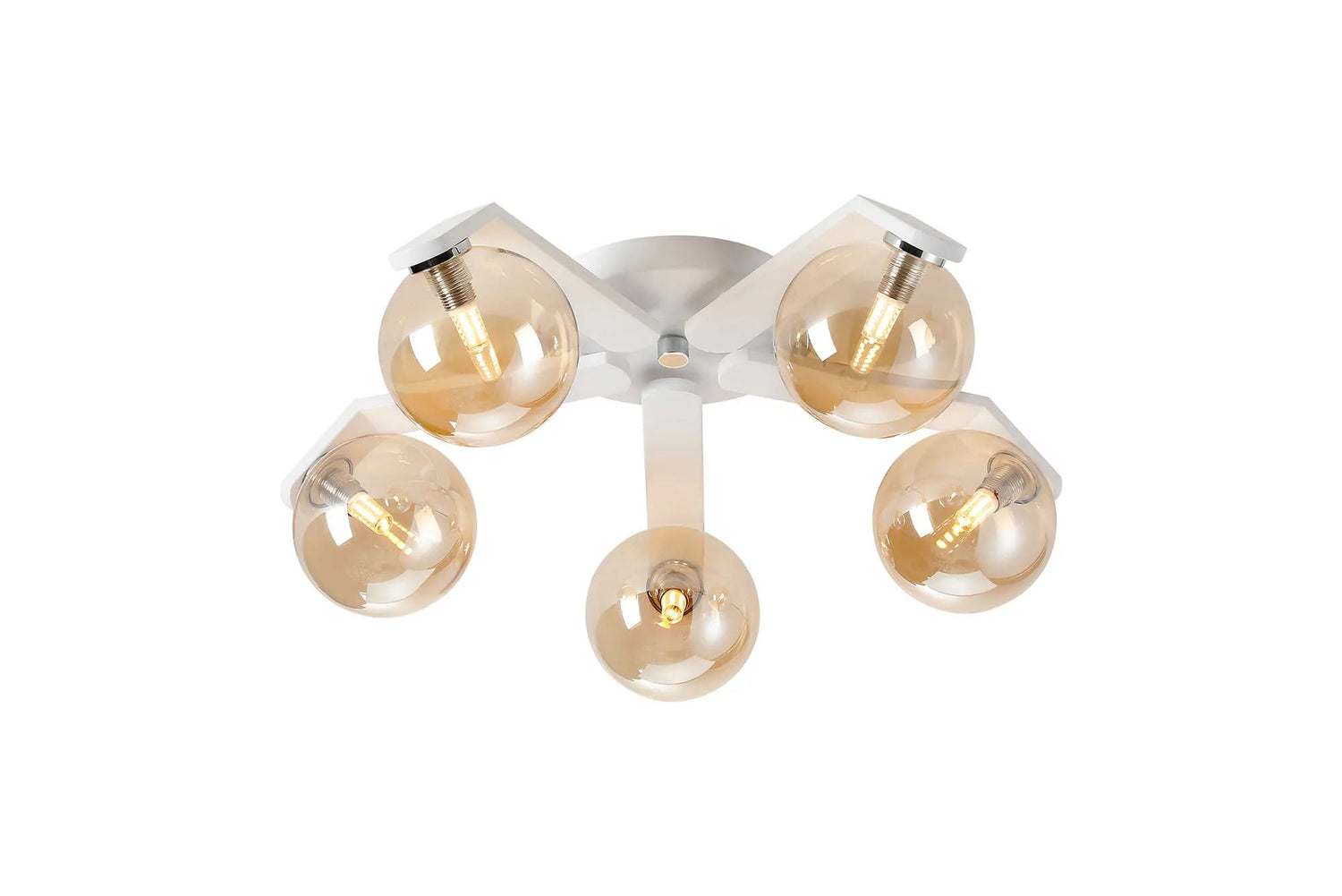 Bellingham Flush Ceiling, 5 x G9, IP44, White/Polished Chrome/Amber Smooth Round Glass
