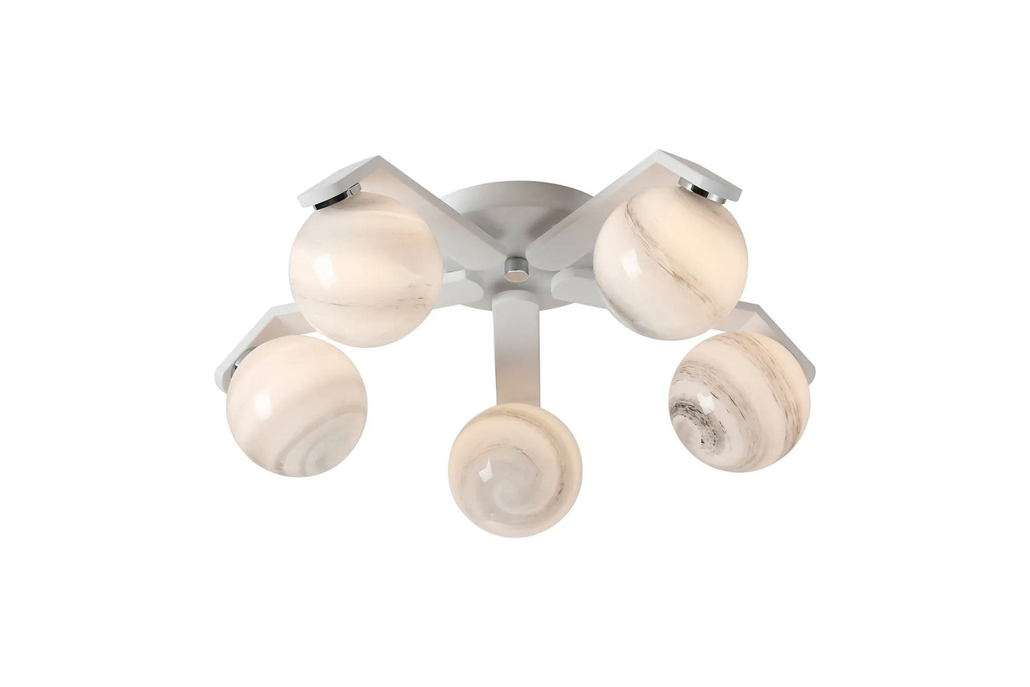 Bellingham Flush Ceiling, 5 x G9, IP44, White/Polished Chrome/Grey Round Marble Effect Glass